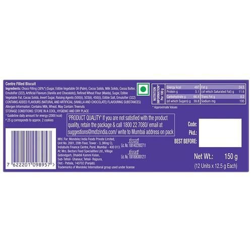 Experience new exciting chocolatey centre filled cookie from Cadbury. Perfect as an indulgent “me time” Treat or to relish happy moments with your loved ones and friends. Indulge in the taste of this amazing combination of delicious cookies that enrobe a smooth chocolatey centre.