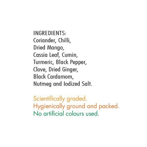 Everest Sabji Masala is almost the fast-food equivalent in the variety of Everest blended spices. It gives vegetable dishes a gently resonant flavour and the appetizing colour so attribute of vegetarian fare.