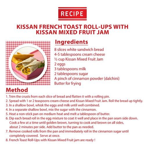 All your favorite fruits come together in Kissan Mixed Fruit Jam. A medley of flavours from 8 fruits such as Banana, Papaya, Apple, Pear, Pineapple, Mango, Grape and Orange blended in to one lip smacking jam. Kissan jam is the best jam with the goodness of your favorite 8 fruits. Kissan Mixed Fruit Jam is best partnered with bread to provide yummy on the go breakfast for your kid every morning. Think of different ways to eat it in. Spread it on a crunchy cracker, roll it up in a chapatti, drink it stirred in milk or whip up a bread and Jam delight for your kids breakfast with an assortment of flavours. Started in 1934, Kissan is a popular brand in India. Kissan is more than just jams, ketchups and squashes. Its all about kids eating happily & growing up happily. Kissan Jams yummy and fruit based sweet spread keeps both, mothers & kids happy. The brands reassurance to mothers is that they can make breakfast times fun yet wholesome every morning with the Kissan range of fruit jams that are made with 100% real fruit Ingredients! Remember craving something utterly sweet? This is your answer to that in a packed sweet spread bottle.