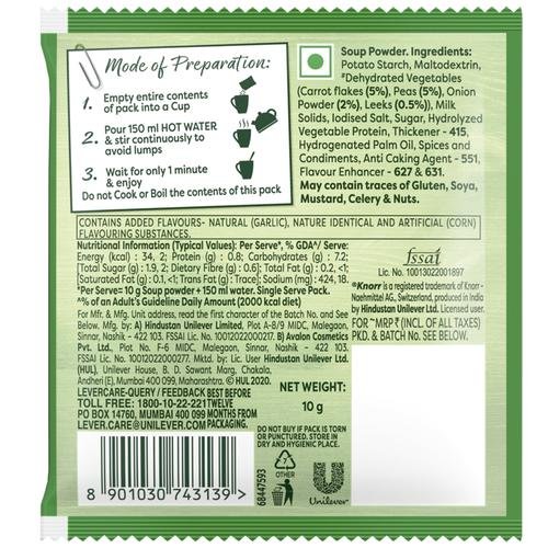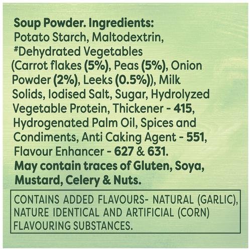 Knorr Mixed Vegetable Cup-A-Soup is made with real vegetables like potatoes, peas and carrots which makes this hearty soup is a wholesome snack. Knorr Mixed Vegetable Cup-A-Soup satisfies your small hunger pangs in just 1 minute. It’s crunchy, delicious and easy to make every time. Made with 100% real vegetables and no added preservatives, this soup is ready in three simple steps. So now enjoy Restaurant like delicious Soup at home. Knorr Soups range comprises 11 delicious flavours of 4 serve soups and 7 flavours of Cup-a-soup. Great taste is in our Nature! Knorr has gone to great lengths to ensure a perfect blend of Ingredients and consistency that give you Restaurant Soup at home.