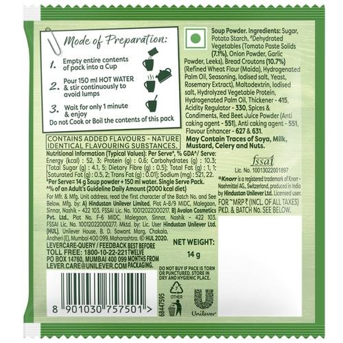 Knorr Tomato Chatpata Cup-A-Soup is the perfect combination of tomato with sour, sweet, salty, and spicy flavours making this cup-a-soup an instant hit. Knorr Tomato Chatpata Cup-A-Soup satisfies your small hunger pangs in just 1 minute. It’s crunchy, delicious and easy to make every time. Made with 100% real vegetables and no added preservatives, this soup is ready in three simple steps. So now enjoy Restaurant like delicious Soup at home. Knorr Soups range comprises 11 delicious flavours of 4 serve soups and 7 flavours of Cup-a-soup. Great taste is in our Nature! Knorr has gone to great lengths to ensure a perfect blend of Ingredients and consistency that give you Restaurant Soup at home.