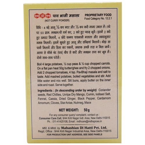 Mdh Pav Bhaji Masala Is Completed With A Well Spice Mix For Vegetables. The Pav Bhaji Masala Is A Mix Of Spices Such As Coriander Seeds, Chilli, Dry Mango Powder, Pepper Etc. That Makes The Flavor Of The Bhaji All The More Exciting. By Adding This Mix In Your Mdh Pavbhaji, You Will Get The Real Flavor Of Mumbai Pavbhaji.