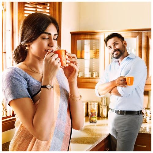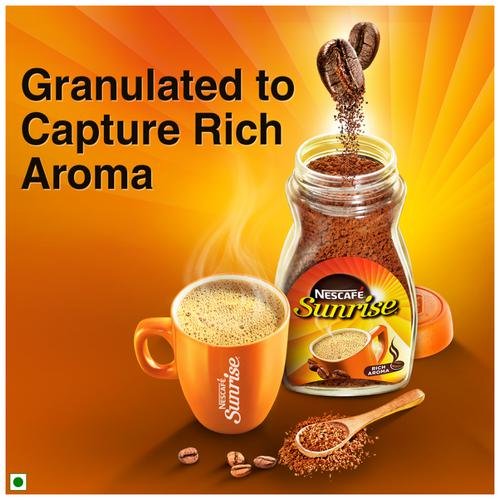 Nescafe Sunrise Instant Coffee Chicory Mixture is a refreshing instant coffee. It is made with blends of 70% coffee and 30% chicory that are slow-roasted to achieve the signature aroma. Awaken your mind and body with the intense taste and wonderfully refreshing aroma of this coffee. This coffee mix is an excellent way to kick start the day. It is easy to make without any hassle. Perfect for everyday use as a part of your balanced lifestyle. It does not contain any added preservatives, colour or artificial flavours.