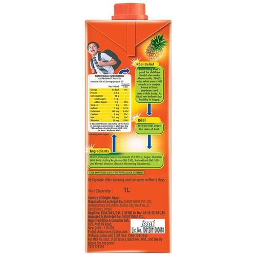 Real Pineapple is made of whopping 75% pineapple juice content for a sweet, healthy drink. It is delicious with unique digestive properties – a good choice in all seasons! Today, Réal Fruit Power has a range of 16 exciting variants of fruit juices – from the exotic Indian Mango, Mosambi, Guava, Plum & Litchi to international favourites like Pomegranate, Tomato, Cranberry, Peach, Blackcurrant, Apricot & Grape and the basic Orange, Pineapple, Apple & Mixed Fruit. You can inculcate the goodness of these healthy fruit juices in your daily life. Made from the best quality fruits, Réal does not have artificial flavours and preservatives, and offer your kids not just great taste, but also Fruit Power – the power of fruits… the power to stay ahead.