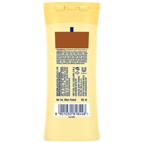 Every day, your skin is exposed to damaging environmental factors like extreme temperatures, low humidity, harsh cleansers and hot water which can make your skin feel very dry. Many people, therefore, trust Indias No.1* Best-Selling Body Lotion, Vaseline Deep Moisture which penetrates 5 layers^ deep into your skin to moisturise for long periods of time, not just to provide temporary, superficial relief. It is made up of a unique double-action formula containing Glycerin which helps replenish your skin lost moisture as well as Vaseline® Jelly which is known to lock the moisture in your skin. Suitable for all skin types, its fast-absorbing and non-greasy formula moisturise your dry skin from the very first application. With such nourishing ingredients, Vaseline Deep Moisture Body Lotion gives you soft, smooth skin all day long.